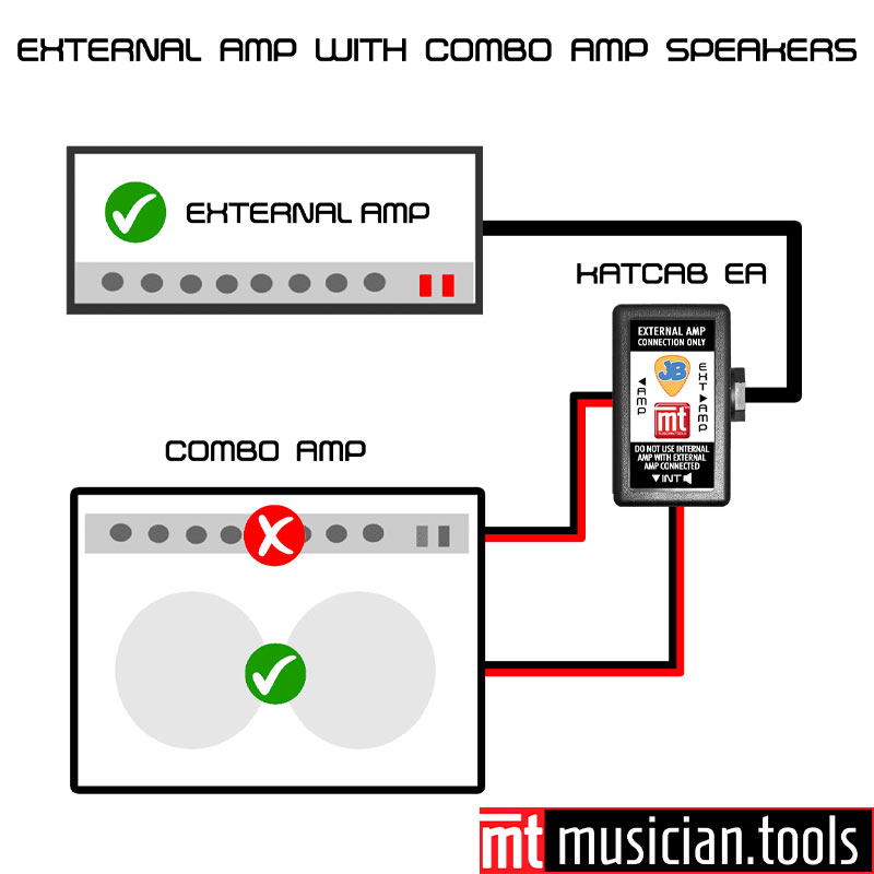 Connect the external amp 8 ohm speaker out to the KatCab UA to use the combo amp speakers.