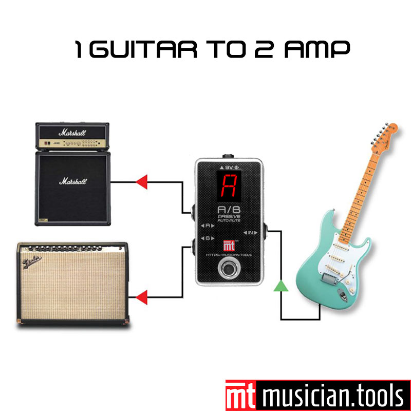 Connect 1 instrument to 2 different amps or connect 2 instruments to 1 amp for easy selection.